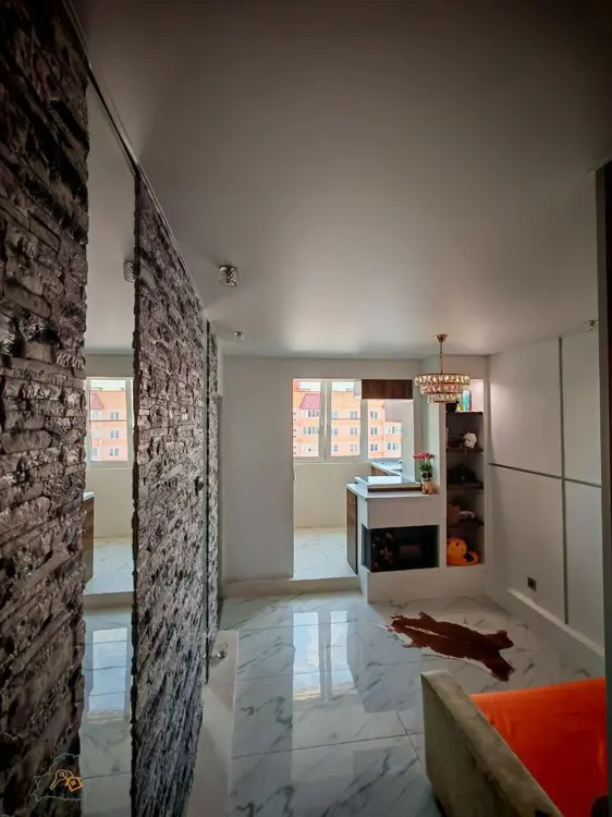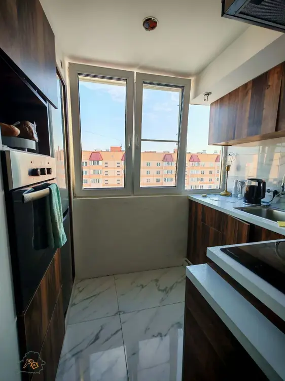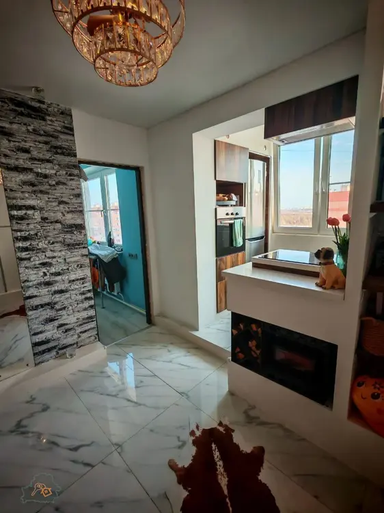 Квартира расположена на комфортном и тихом десятом этаже десятиэтажного панельного дома. Дом построен в 2015 году. Благодаря уникальному и функциональному дизайнерскому решению получились две изолированные комнаты и смежная кухня-гостиная.