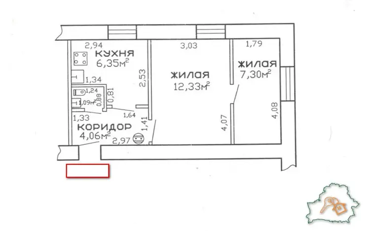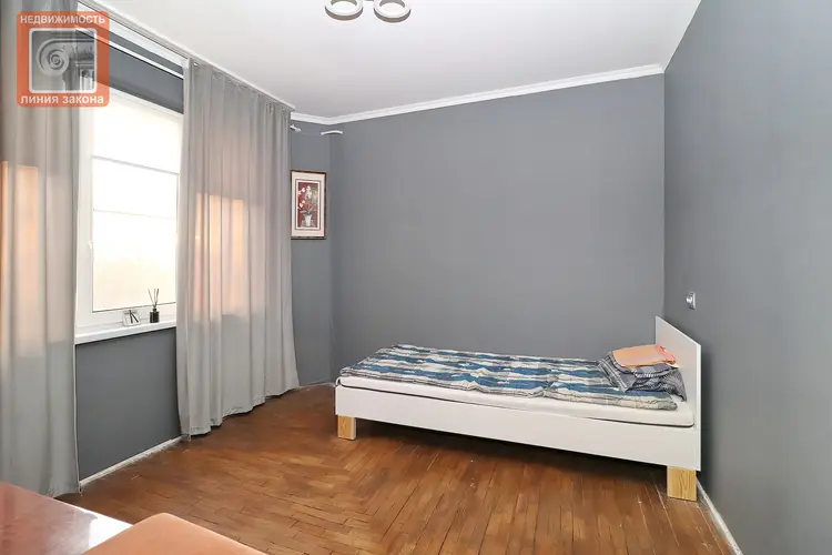 Общая площадь 31,1 м.кв., жилая 19,6 м.кв., кухня 6,35 м.кв. Санузел совмещенный. Проходная комната с высокими потолками 2,76 м.