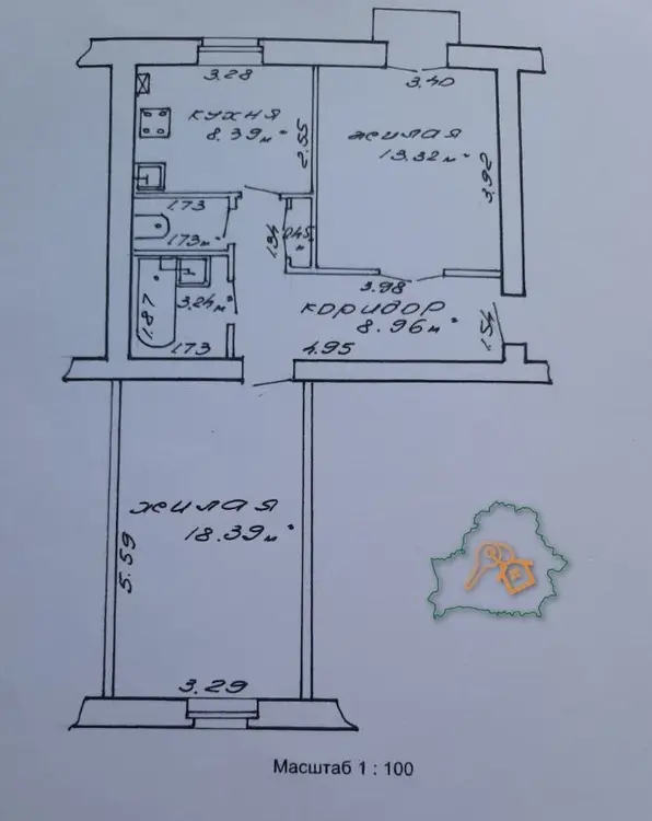 Квартира расположена на комфортном 2-м этаже 5-х этажного дома 1958 года постройки. Общая площадь квартиры 54,48 -кв.м., жилая площадь - 31,71 кв.м. кухня - 8.39 кв.м. Санузел раздельный, комнаты изолированы, перекрытия ж/б плиты.