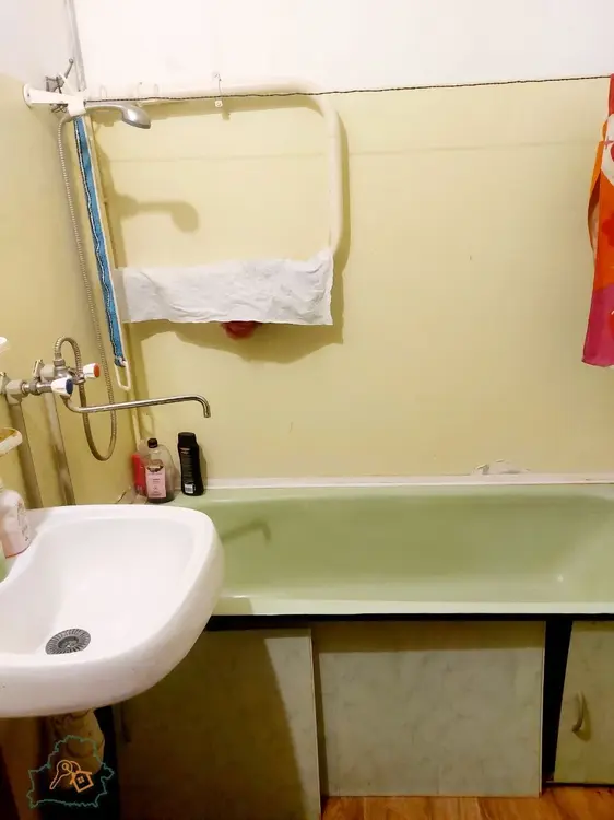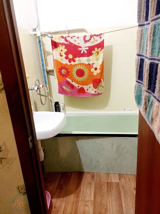 Квартира в жилом состоянии. На полу в санузле и ванной плитка, в остальной части – линолеум, на кухне рабочая зона современная плитка. Вся сантехника в рабочем состоянии.