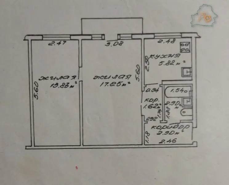 Общая площадь 44,32 м.кв., жилая 31,08 м.кв.. кухня 5,82 м.кв. Санузел совмещенный. Окна все ПВХ, в комнатах на полу ламинат, в санузле - плитка. Потолки окрашены, межкомнатные двери в отличном состоянии, входная дверь металлическая.