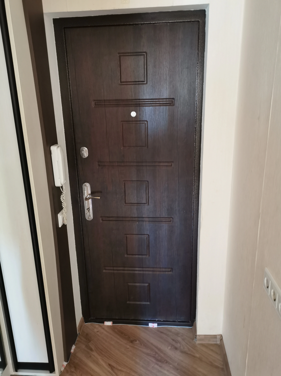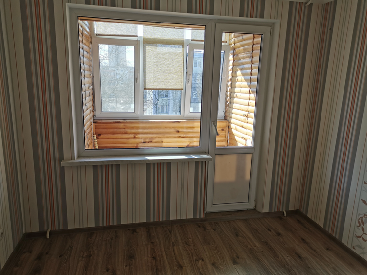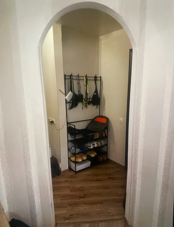 Окна ПВХ выходят в тихий зелёный двор, поэтому в квартире светло и спокойно. Красивая арка между кухней и комнатой добавляет интерьеру аккуратный и приятный акцент. При этом пространство закрывается дверью. Входная металлическая дверь обеспечивает высокий уровень безопасности.