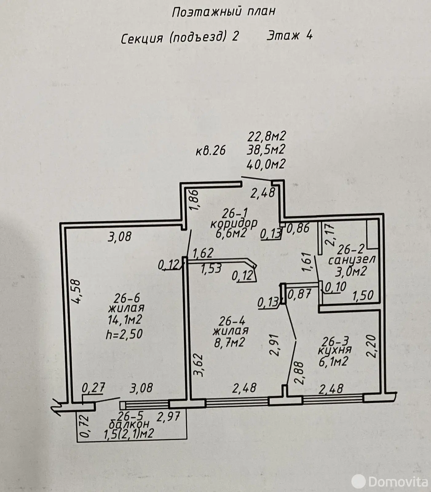 Квартира находится на 4 этаже 5-этажного панельного дома. Общая площадь — 40 м², кухня — 6,1 м². Удобная планировка: все комнаты раздельные, есть балкон.