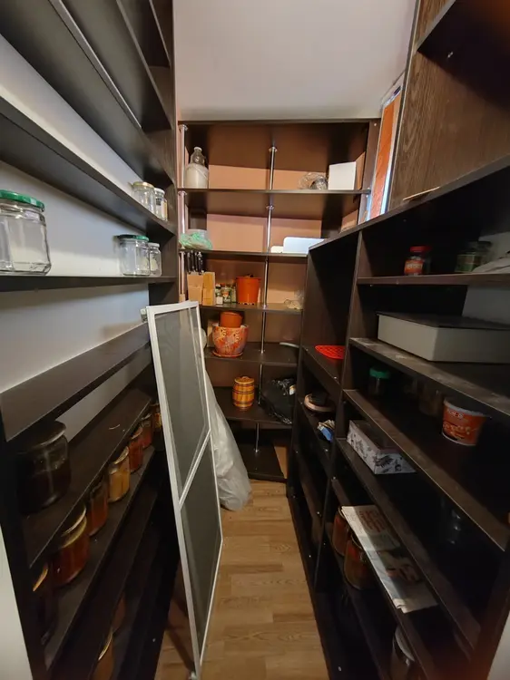 В квартире много мест для хранения вещей, помимо гардеробной и кладовки, четыре встроенных шкафа с антресолями в коридоре и прихожей. Также в подвале есть помещение для хранения площадью около 5 кв.м.