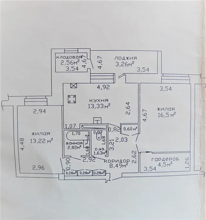 Квартира улучшенной планировки, общая площадь составляет 61,93 кв. м., есть гардеробная комната, а также большая лоджия с вместительной кладовкой.