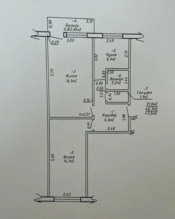 Общая площадь — 46,7кв.м.,идеально подходят для комфортного проживания семьи или аренды. Капитальный ремонт был закончен в 2024г.