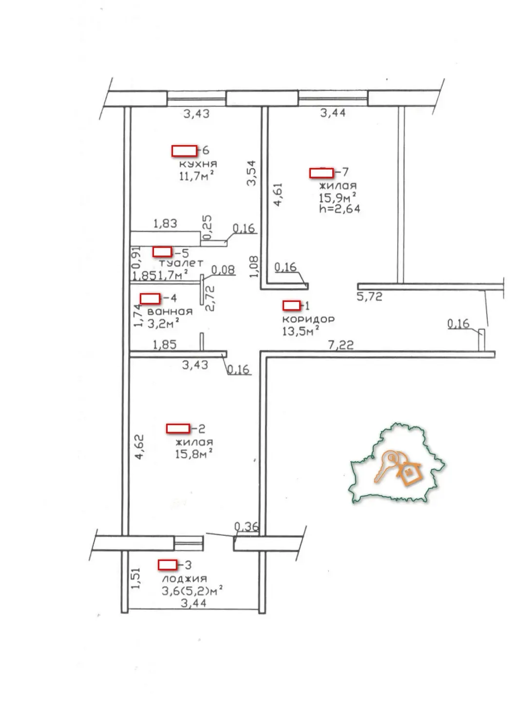 Окна в квартире ПВХ, комнаты выходят на разные стороны. Лоджия также застеклена рамами ПВХ. Входная дверь деревянная.