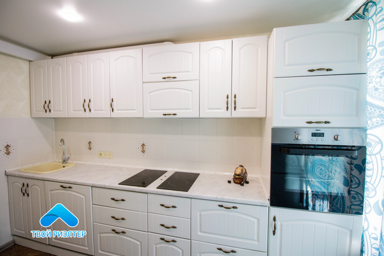 В квартире выполнен свежий современный ремонт, вся мебель и техника остаётся новым владельцам. Полностью готова к проживанию. При продаже остаётся три встроенных шкаф-купе, встроенная и выполненная под заказ дизайнерская кухня с варочной панелью и духовым шкафом, вытяжкой и посудомоечной машиной. Установлены приборы учёта воды, эл-ва, электроплита, кондиционер.