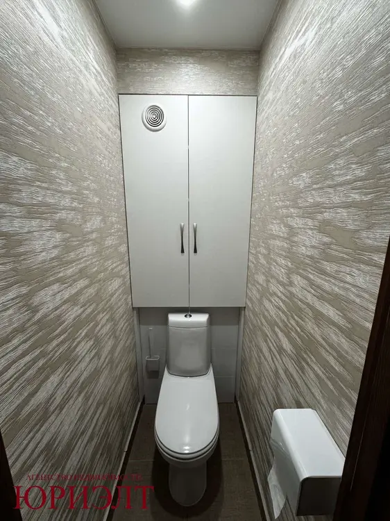 В туалете предусмотрен вместительный ный шкаф для хранения бытовой химии.