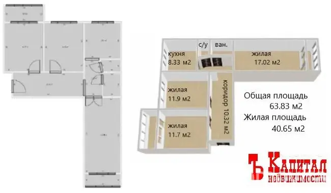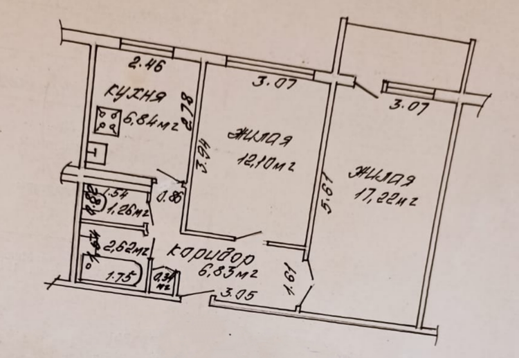 ( 11,73/11.9/17.02 м2 ). Два балкона( в спальне и в зале). Площадь кухни 8.33 м2 с кухонным гарнитуром . Большое окно делает помещение кухни светлым и просторным. Санузел раздельный . Квартира в аккуратном жилом состоянии, сухая ( хорошая вентиляционная система) и тёплая . Напольное покрытие смешанное ( ламинат/ ковролин) . Санузлы отделаны кафелем. Потолки окрашены, ровные стены оклеены обоями нейтральных тонов.