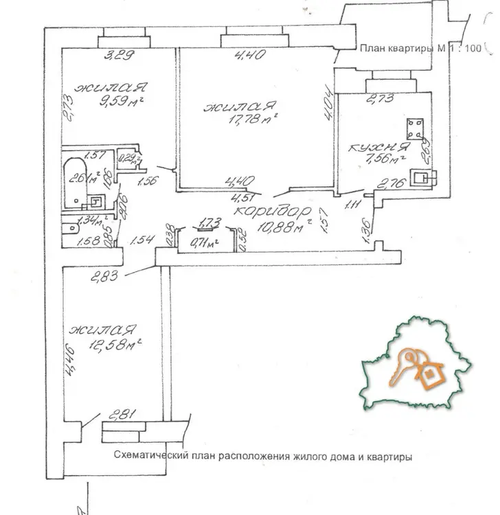 Продается 3-х комнатная светлая и теплая квартира площадью 63,34 м.кв. Адрес: г. Гомель , ул. 8-я Иногородняя, дом 2, корп. 10.