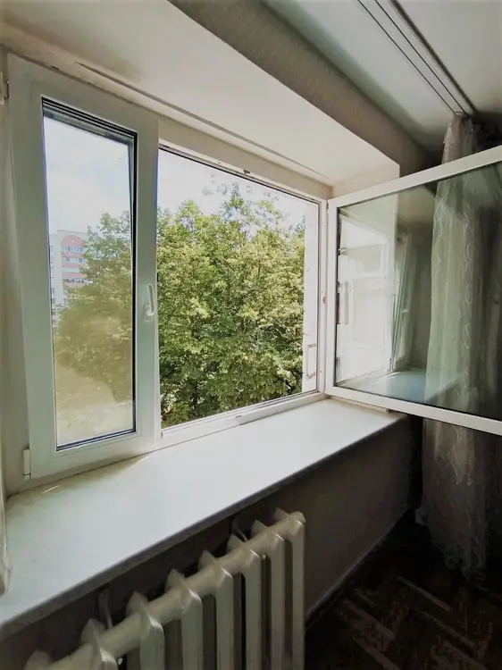 Практически все окна выходят в сосновый сквер, окно спальни на другую сторону, также в зеленый двор.