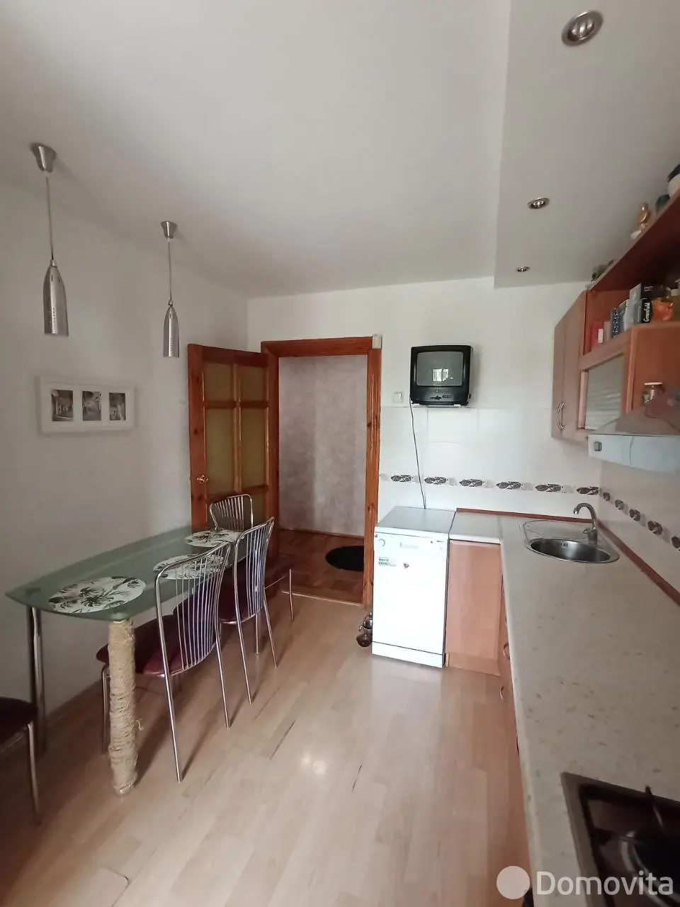 Двери выполнены из массива, все окна - производства ПВХ Becker system, на полу в комнатах и коридоре - ухоженный паркет, на кухне - ламинат, на полу в санузле и ванной комнате - плитка, балконы обшиты вагонкой. Удобно и практично оформлен тамбур.