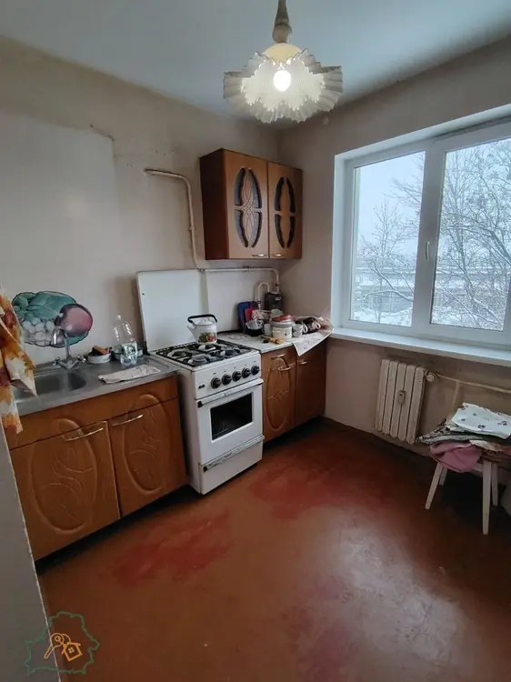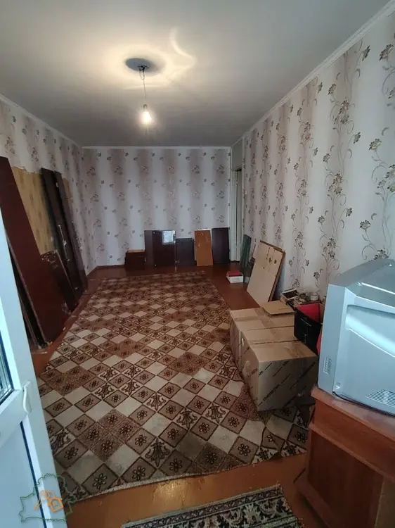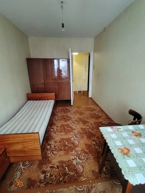 Жилая площадь 41.89 м.кв., компактная кухня 5,77 м.кв. На полу в санузле – плитка, в комнатах, кухне и прихожей – ДСП. Потолки оштукатурены и окрашены. Санузел совмещенный.