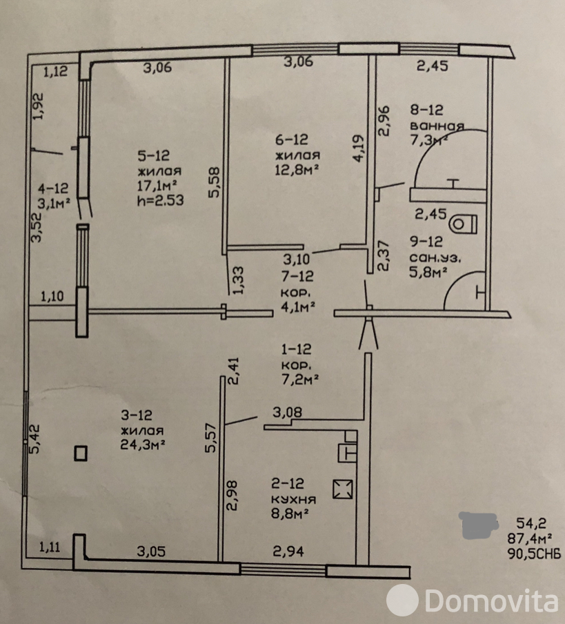 Эксклюзивная квартира( перепланировка)! Общая площадь по СНБ = 90,5 кВ.м.