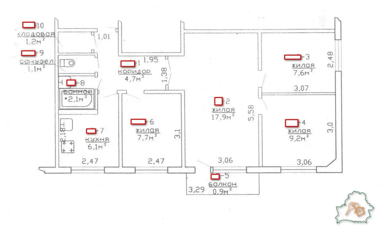 Продается четырехкомнатная квартира на удобном 3 этаже 5-ти этажного дома по адресу: г. Гомель , ул. Жукова, дом 1.