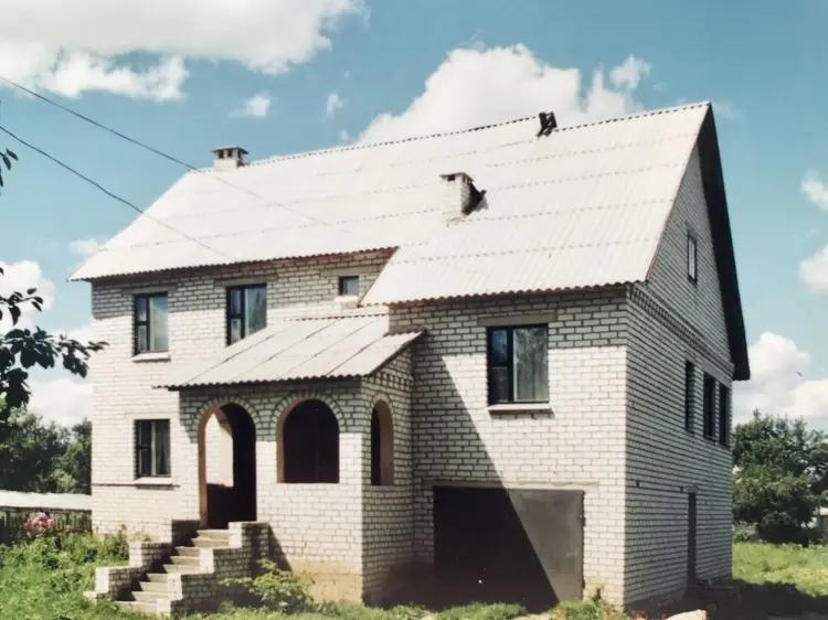 Продается двухуровневый коттедж (166,9 кв.м.) с земельным участком 13,32 соток (выкуплен). Преимуществами продажи являются расположение в центре, подключение к коммуникациям города (канализация, отопление, водо-и электроснабжение, связь), материалы стен (блок+кирпич), железобетонные перекрытия. На первом этаже расположена кухня с гостиной 47.6 кв.м., прихожая 17,2 кв.м. и санузел, а на втором – спальные комнаты (14,6; 16,6 и 19,3 кв.м.), холл - 23,3 кв.м., ванная комната с санузлом и лоджия. Полы (паркет) и лестница изготовлены из дуба. Имеются гараж со смотровой ямой и помещение под баню, а также цокольный этаж с подсобными помещениями (высота потолка 2.2 м.). Дополнительно оборудовано локальное отопление. Продажа кв. метра общей площади здания является самой низкой (280 дол.) в данной категории продаж.
