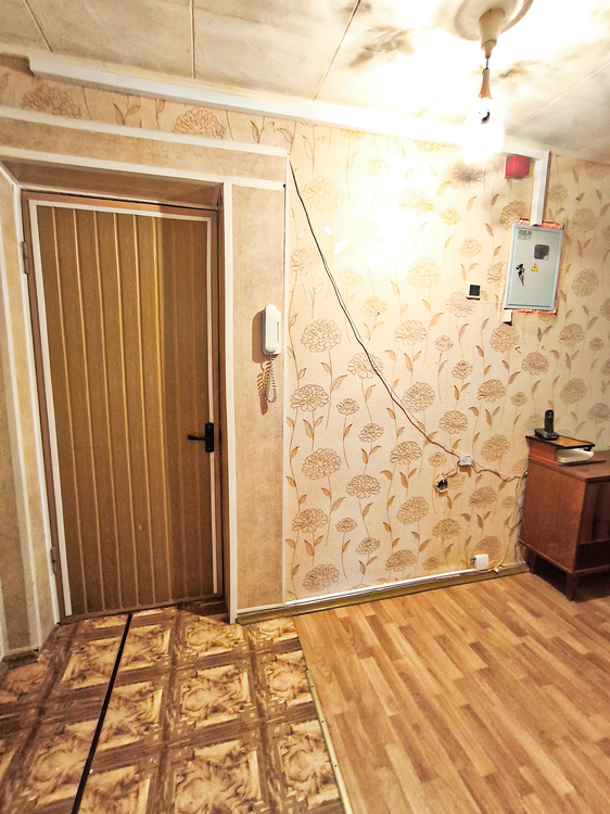 Балкон застеклен, современные стеклопакеты. Установлен домофон.