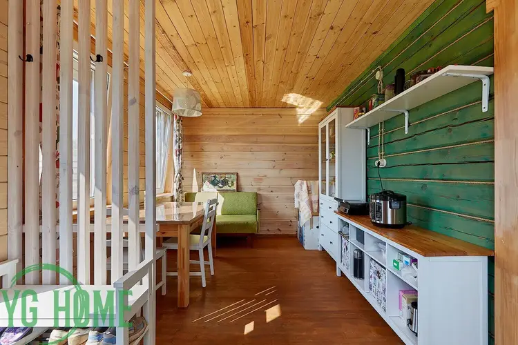 - веранда сделана из лиственницы. Не отапливается, предусмотрена розетка для мощного обогревателя.