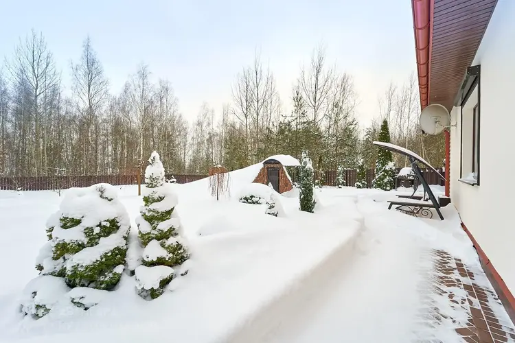 - Произведены работы по ландшафтному дизайну. Никакого вскопанного поля и стройматериалов под окнами. Высажены хвойные деревья, декоративные кустарники, оборудована детская площадка, застекленная беседка, хозблок, винный погреб.