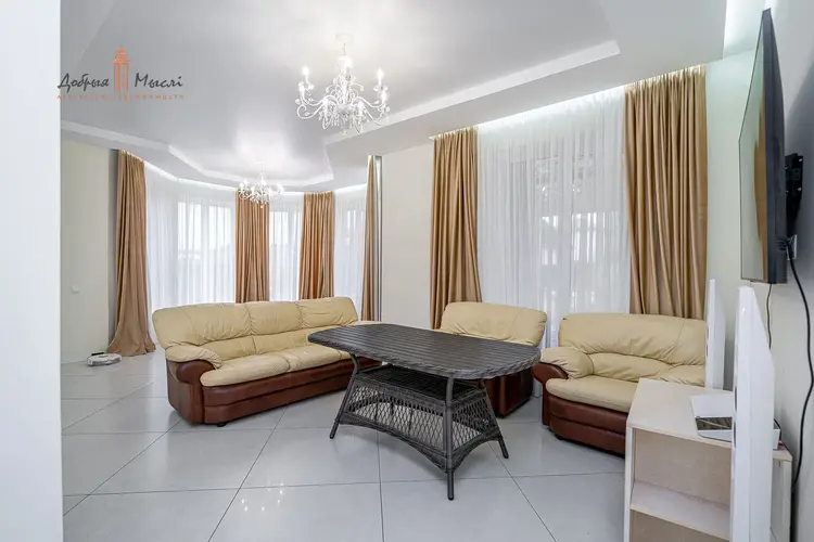 Коттедж построен в 2017 году. Общая площадь дома 187,9,кв.м., по СНБ 192,9 кв.м. жилая площадь 117,8 кв.м. Ленточный фундамент, стены из газосиликатного блока 400мм, утеплён 50 мм минеральной ватой, оштукатурен. Крыша - металлочерепица. В доме сделан дизайнерский ремонт.
