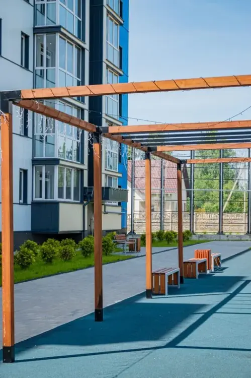 Благоустройство придомовой территории, закрытые дворы без машин, современные оборудованные детские и спортивные площадки. Видеонаблюдение территории, видеодомофоны, просторные парковки, колясочные, велобоксы - все в стоимости, без доплат. Pet-friendly среда.