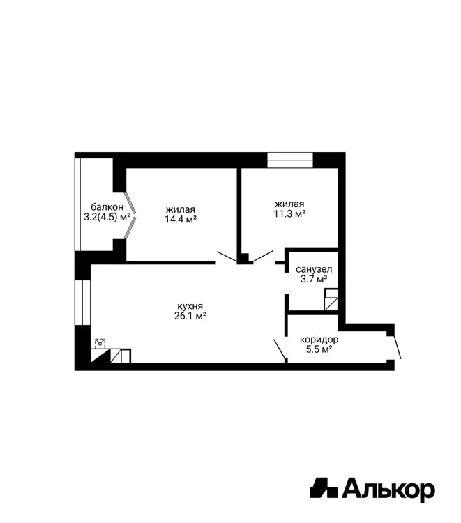Квартира расположена на комфортном четвертом этаже, имеет две изолированные комнаты и просторную кухню-гостиную, вместительную прихожую, совмещенный санузел и застекленную лоджию с окнами в пол.