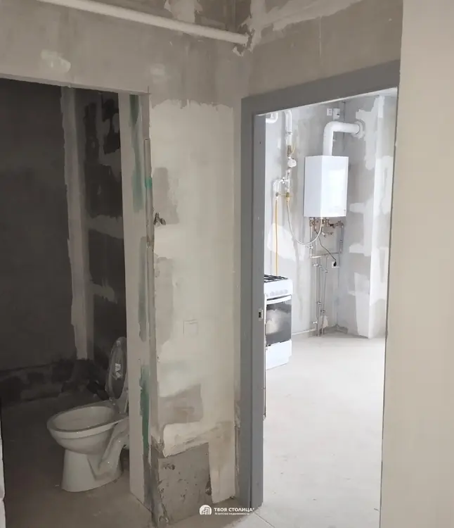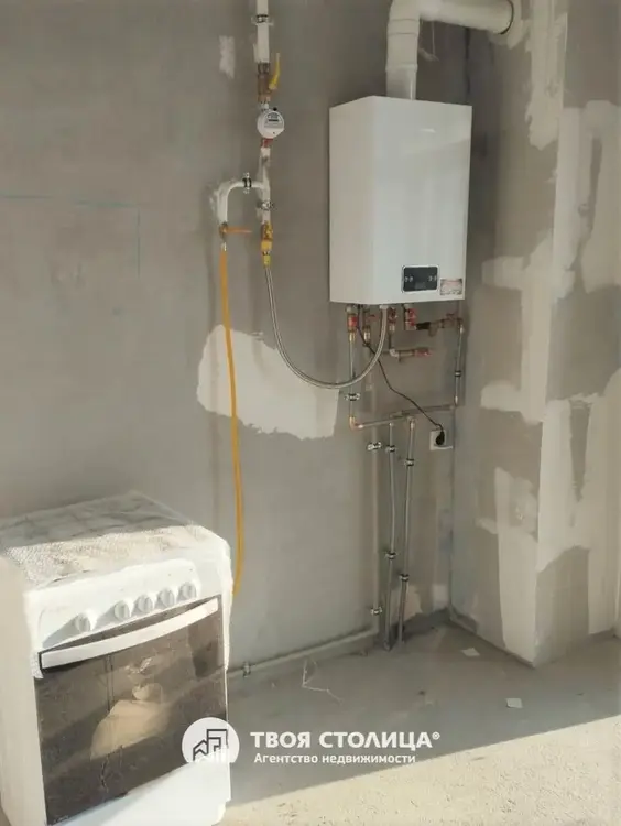 В квартире установлены унитаз, приборы учета, газовая плита, дверь на кухню, радиаторы, проведена электрика (установлены розетки и выключатели).