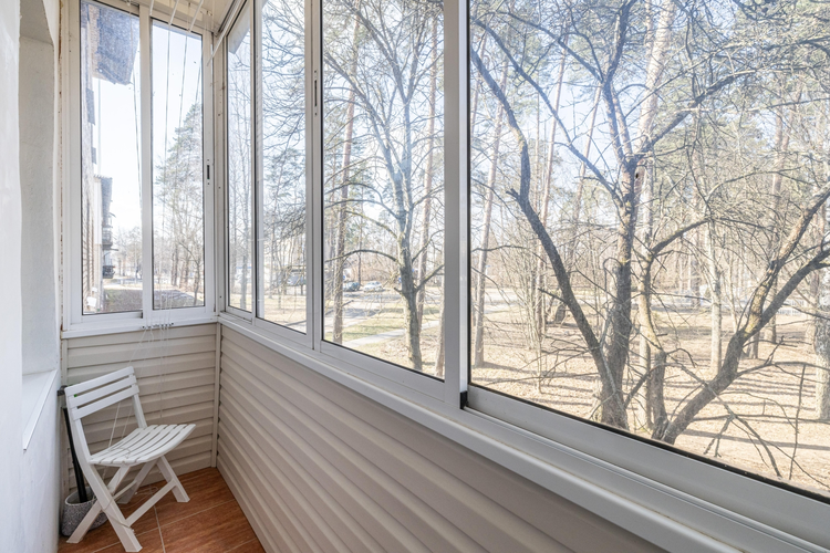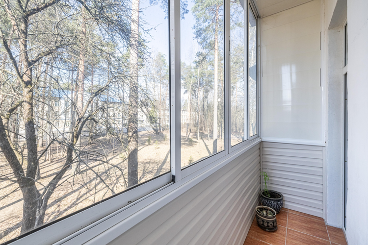 Дом окружает много зелени, а из окон квартиры красивый вид .
