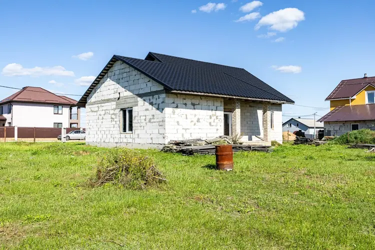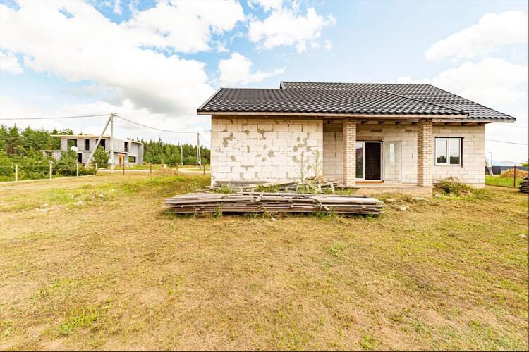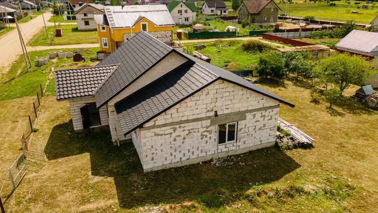 На просторном участке возведен новый дом - 2022 года постройки, выполненный из современных материалов с хорошо продуманной архитектурой, готовность 57%. Дом подойдёт как для круглогодичного, так и для временного проживания. Стены дома возведены из газосиликатных блоков, качественные двухкамерные стеклопакеты, высота потолков 3 метра.