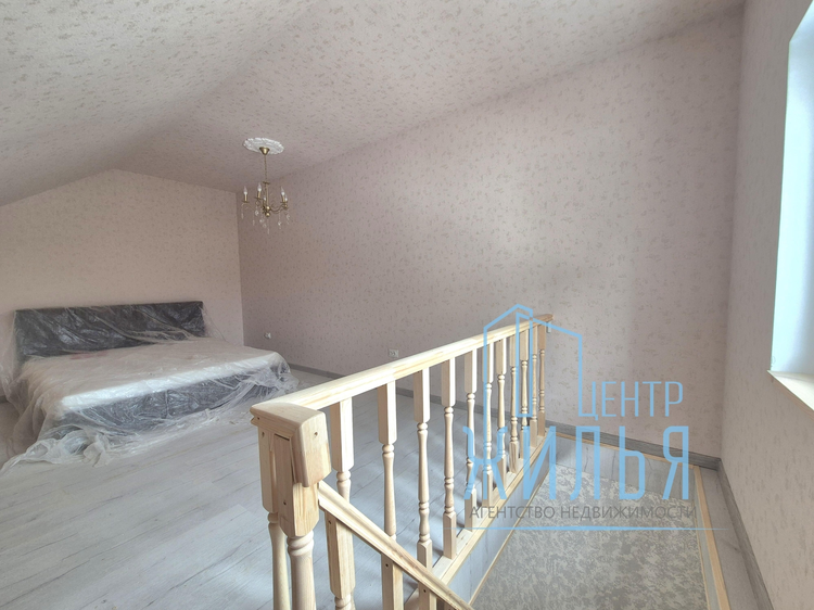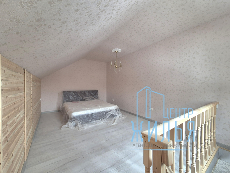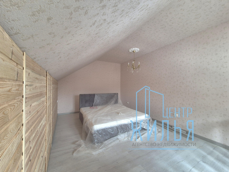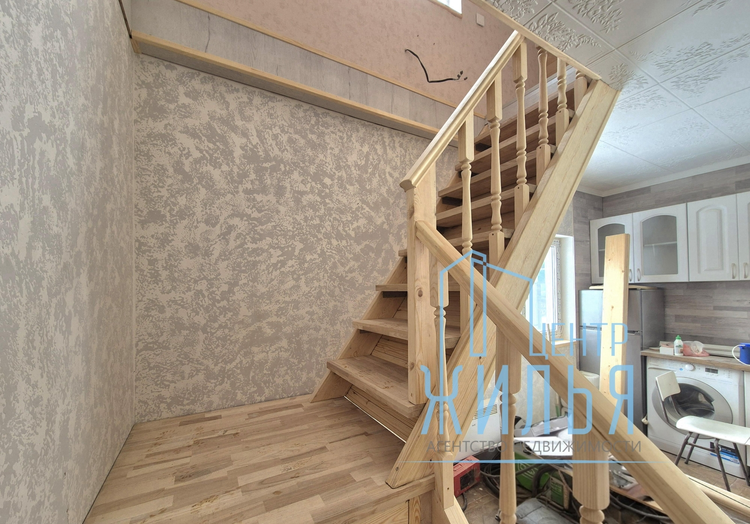 В доме есть 2 просторные жилые комнаты (одна проходная) на первом этаже и 1 комната на втором этаже с монтированной системой хранения. В доме большая светлая кухня, которая может служить одновременно и гостиной. На полу уложен ламинат, в санузле — плитка. Установлены окна ПВХ, хорошая металлическая дверь. Ремонт в доме выполнен в спокойных тонах. Установлен современный кухонный гарнитур. Электро плита. Дом продается частично с мебелью. В доме имеется оборудованный погреб.
