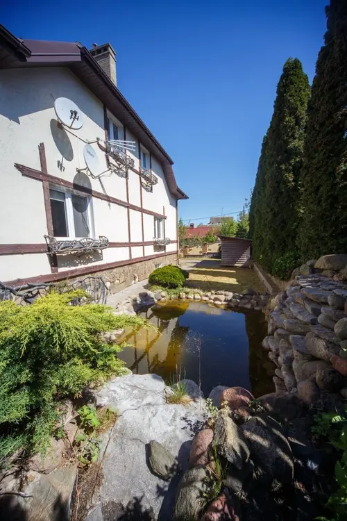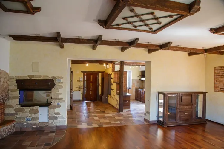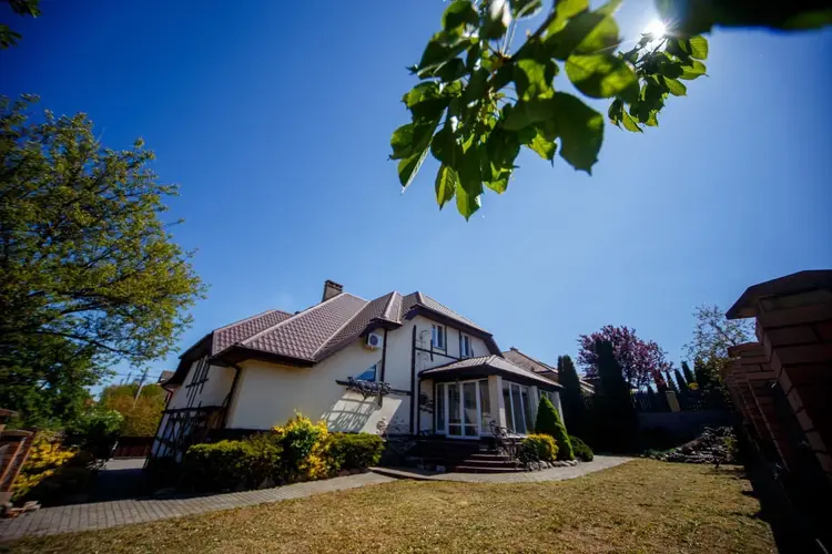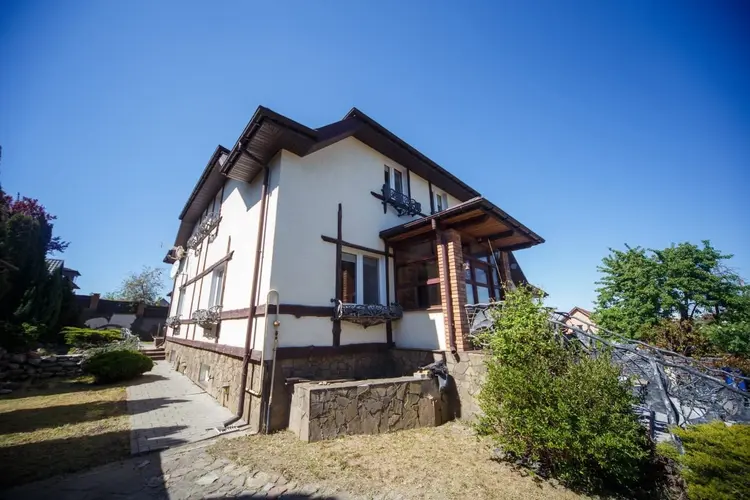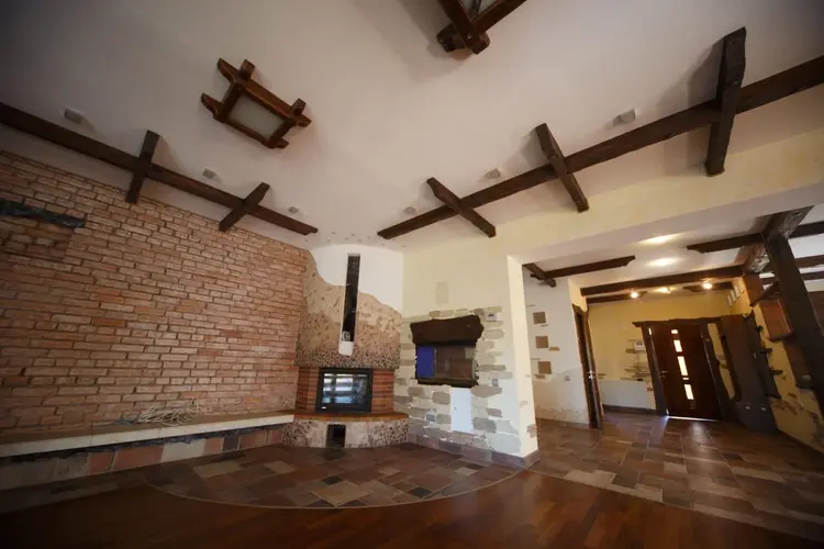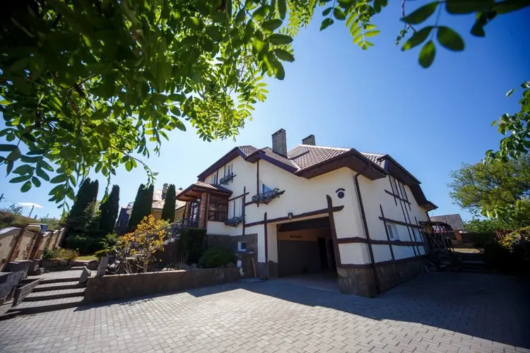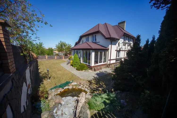 Дом выполнен из качественных материалов. Фундамент —бетон. Материал стен — кирпич. Перекрытия ж/б. Кровля черепица .Окна ПВХ стеклопакеты. Количество комнат – 5 гостиная с камином 47.8 м2, комнаты (26.9 м2/25.9 м2/24.0 м2/23.3 м2).Кухня 17.2 м2.Сан.узел 20.6 м2.