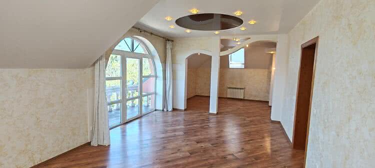 Продается просторный светлый коттедж на улице Февральская (Палестина). Общая площадь 305 м.кв., жилая 122,7 м.кв. Стены кирпич. Крыша металлочерепица. Межэтажные перекрытия ж/б плита. Подключены все центральные коммуникации (вода, газ, электричество, канализация). Отличный ремонт. 5 жилых комнат. Кухня 21,9 м.кв. Межкомнатные двери массив. Полы ламинат/плитка. Санузел на каждом этаже. Просторный гараж на 2 авто.На участке имеется гостевой дом. В его составе: кухня, баня, большой бассейн, бильярдная, санузел, 2 гостевые спальни, столовая с камином. Ухоженный участок 7.4 сотки, огорожен капитальным забором, с автоматическими откатными воротами. Напротив дома гостевая парковка. Фасад дома утеплен. По периметру участка оборудована ливневая система. Асфальтированный подъезд. Торг.
