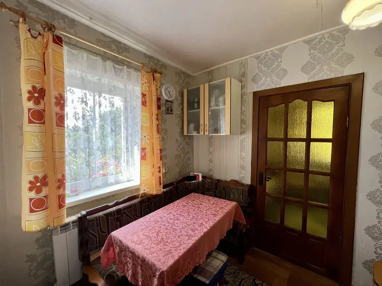 Дом 1-этажный, частично обшит сайдингом, 4 жилые комнаты, совместный санузел, общая площадь дома 91/жилая 76/кухня 8,3 м/кв.