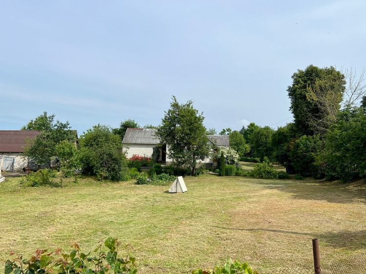 Участок 25 соток, на праве собственности ПНВ, ухоженный, обрабатывается, огорожен со всех сторон сеткой с воротами для авто, имеются плодовые деревья и кустарники. На участке есть кирпичная хозпостройка и гараж из блоков. Так же имеется большой подвал в пристройке.