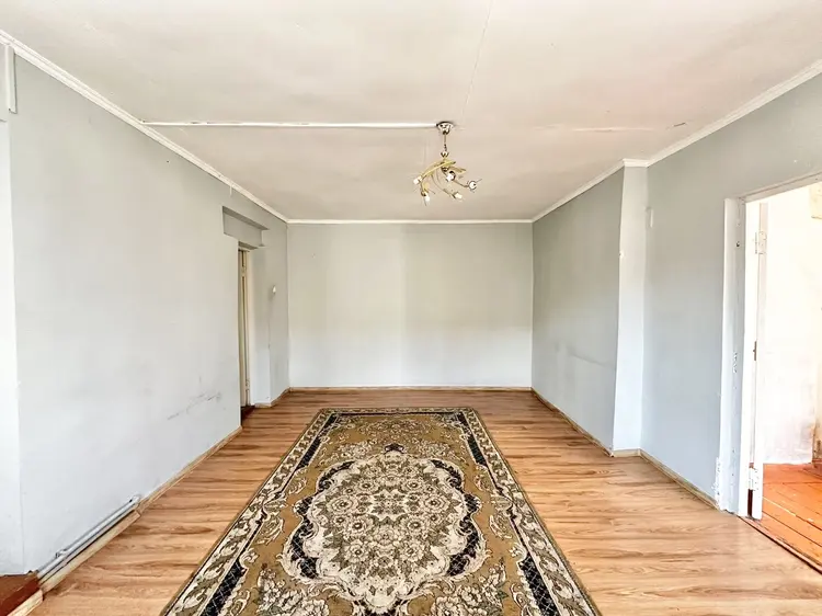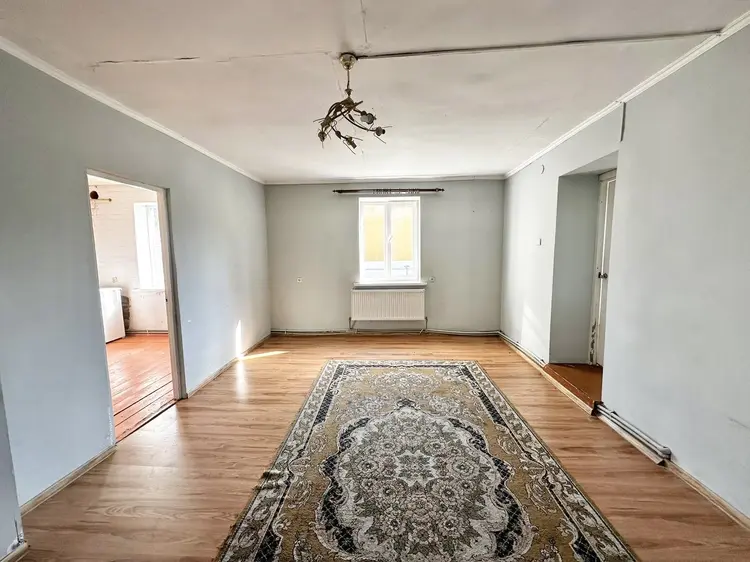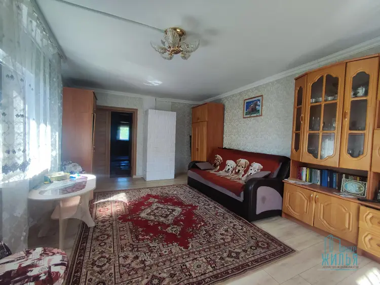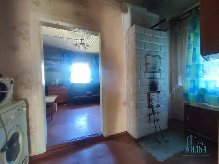Дом одноэтажный бревенчатый, перекрытия деревянные, крыша – шифер. Установлены стеклопакеты, пол – ламинат, ДСП. Есть погреб. Отопление печное (две печки). Общая площадь квартиры 46 м.кв., состоит из двух комнат, кухни, коридора. Коммуникации центральные: электричество разведено по дому, вода холодная введена в дом, газ – по участку, канализация – по улице. Земельный участок 5 соток огорожен со всех сторон. Вход отдельный от соседей.