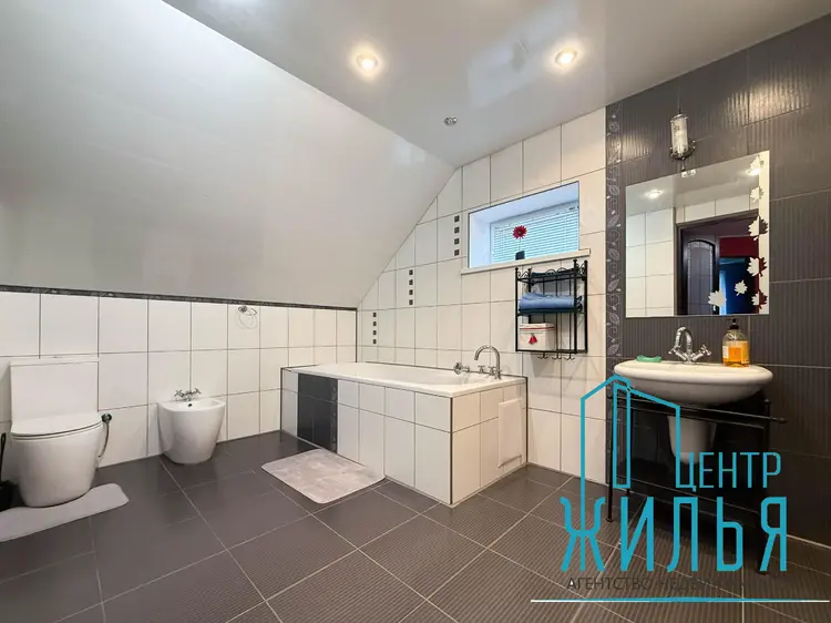 Кровля покрыта металлочерепицей. Все коммуникации заведены в дом. Водоснабжение центральное и дополнительно установлена система отчистки воды, канализация центральная, отопление газовым котлом. На всем первом этаже теплый пол и в сан узлах. Оконные проемы - стеклопакеты. На полу на первом этаже - плитка, на мансардном - ламинат.