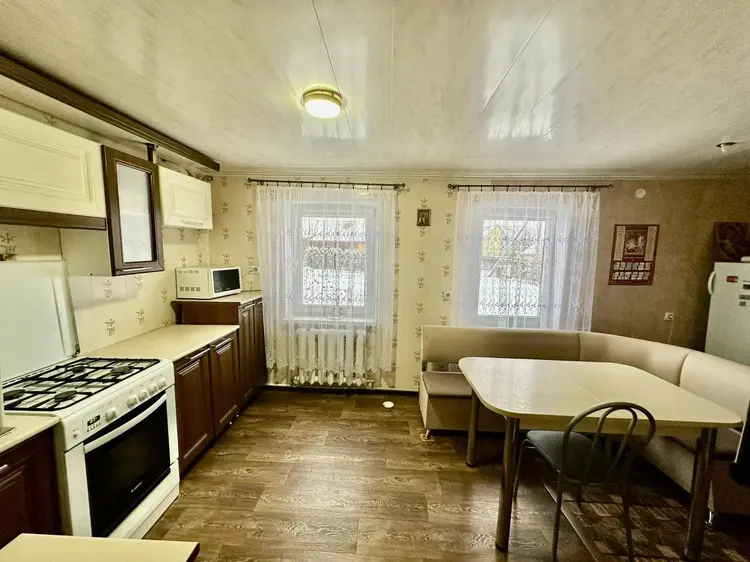 Общая площадь 80,7 м. кв., жилая – 43,5 м.кв., кухня – 18,5 м.кв. 1944 г.п. Дом деревянный, крыша стальная, окна ПВХ, фасады модернизированы обшиты сайдингом . Водоснабжение, газоснабжение, канализация, электроснабжение центральные, имеется оптоволокно. Огорожен со всех сторон.