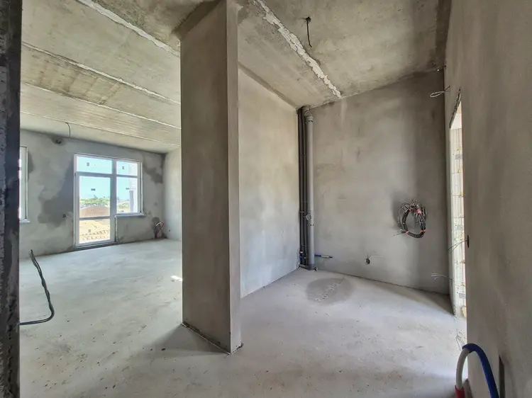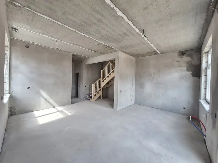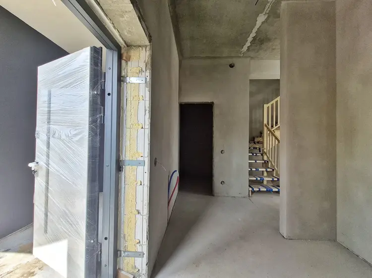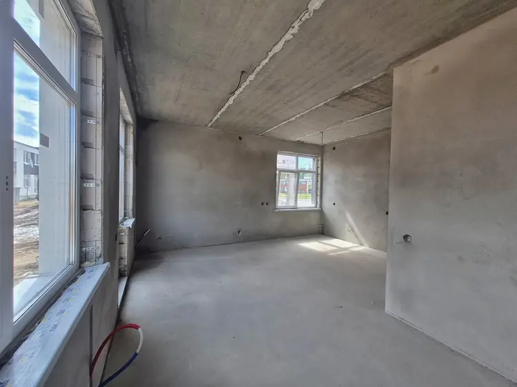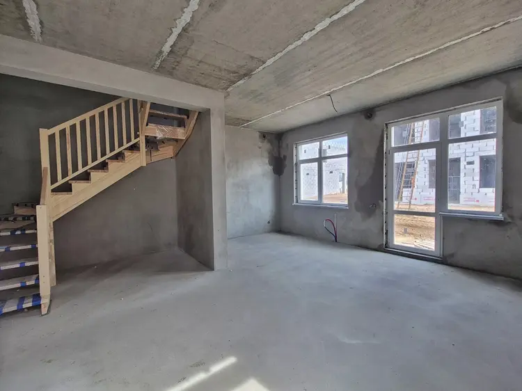 Квартиры 90-100 м² уже с планировками. На первом этаже студия, с/у и котельная. На втором этаже 3 жилых комнаты и с/у.