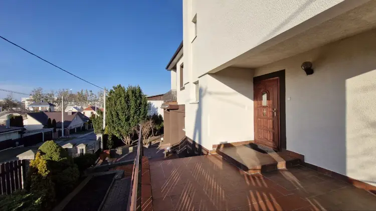 В доме имеется баня, бильярдная, гараж в подвальном помещении, три санузла, два камина, природный газ, центральная канализация, водопровод. Крыша - металлочерепица, пластиковые стеклопакеты. Участок 6,94 соток облагорожен и огорожен забором, практически прямоугольный. Земля в пожизненно наследуемом владении. Высажены туи, сосны, плодовые деревья. Двор выложен тротуарной плиткой. На участке организована зона барбекю, установлен фонтан, бассейн и беседка.