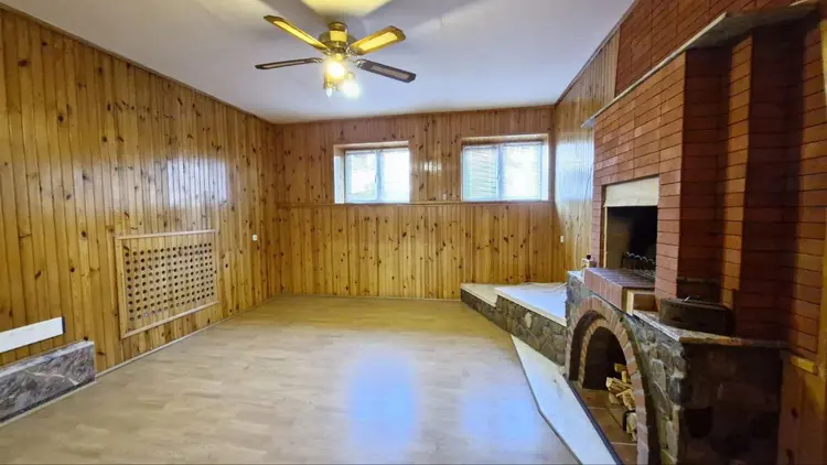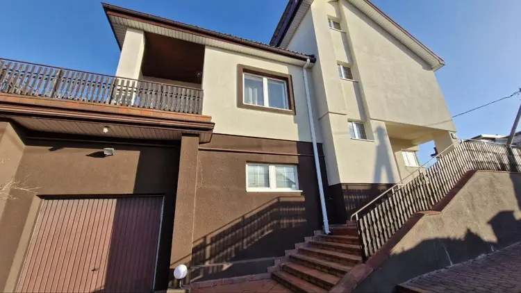 В доме имеется баня, бильярдная, гараж в подвальном помещении, три санузла, два камина, природный газ, центральная канализация, водопровод. Крыша - металлочерепица, пластиковые стеклопакеты. Участок 6,94 соток облагорожен и огорожен забором, практически прямоугольный. Земля в пожизненно наследуемом владении. Высажены туи, сосны, плодовые деревья. Двор выложен тротуарной плиткой. На участке организована зона барбекю, установлен фонтан, бассейн и беседка.