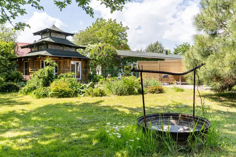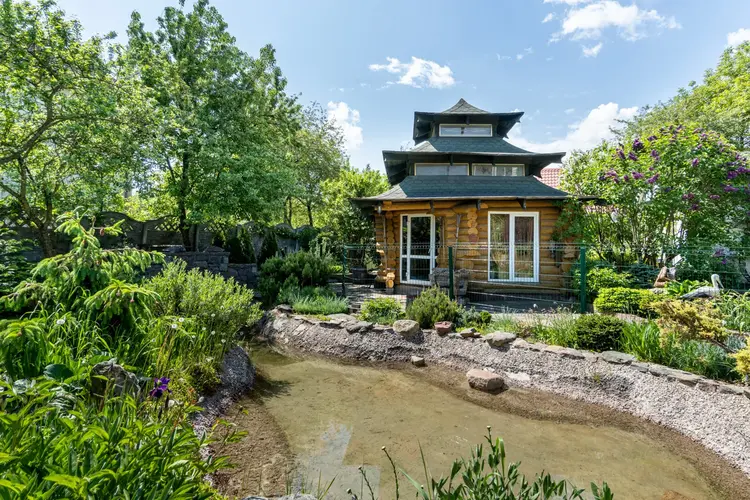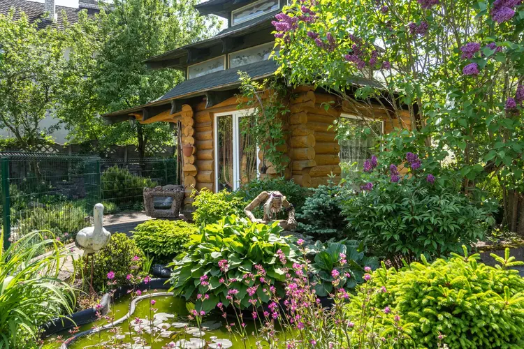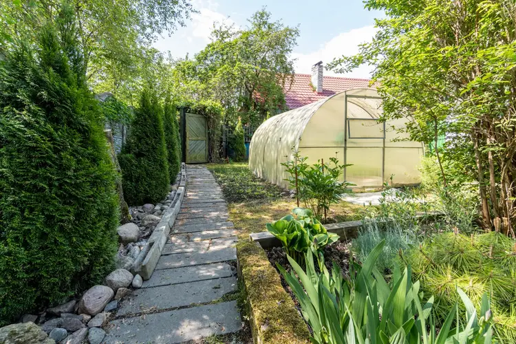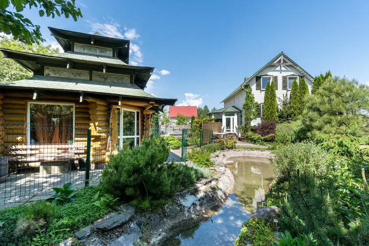 На территории участков организован живописный сад с плодовыми и декоративными деревьями и кустарниками. Цветущий, ухоженный, он имеет продуманные зоны для отдыха и место для барбекю. Устроен декоративный пруд. Отведена зона для посадок с обустроенной теплицей. Земля культивирована. Имеются удобные подъездные пути.