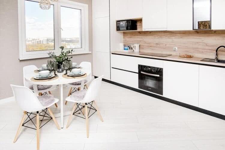 Близость к центру города (7 минут на машине) и тихий, уютный двор – это удачное сочетание, которое позволяет наслаждаться комфортом и полноценно отдыхать в этих светлых и современных апартаментах.