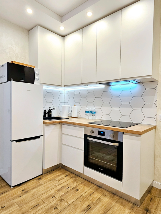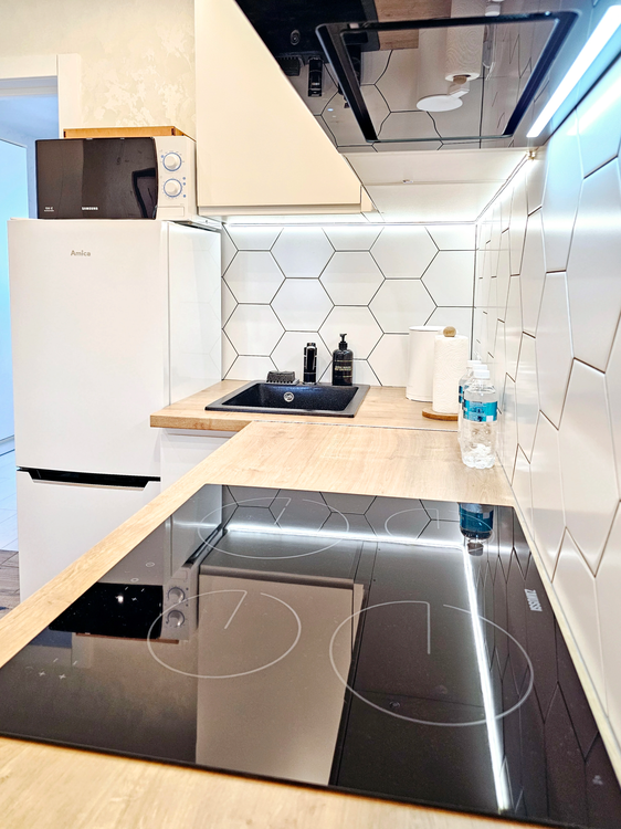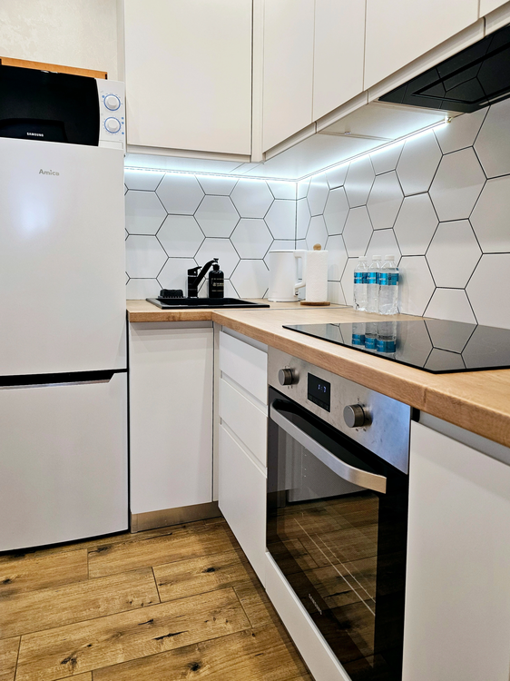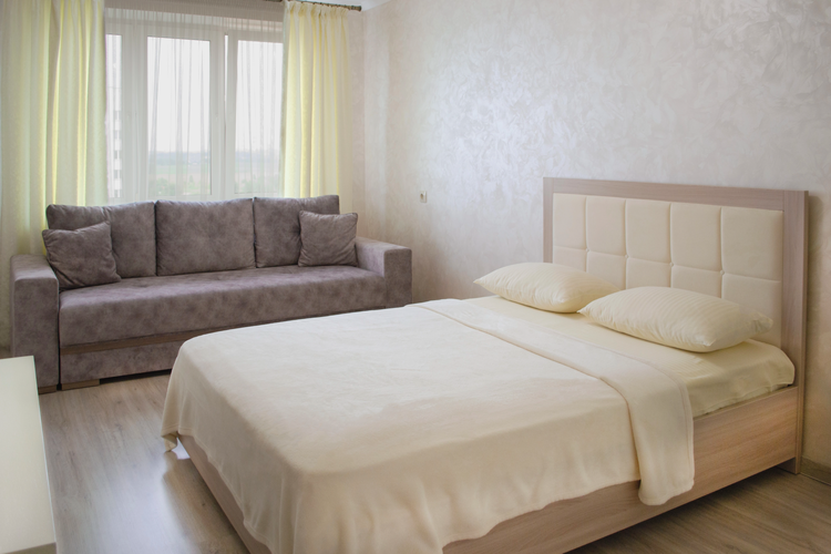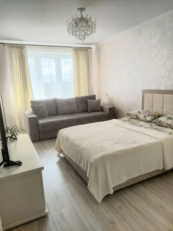 Для вашего комфортного проживания квартира оснащена всем необходимым: WI-FI, телевизор, Smart TV с подпиской IVI, стиральная машина, духовой шкаф, микроволновая печь, утюг, фен, холодильник, посуда, эл. чайник. Балкон оснащен барной стойкой и стульями где можно полюбоваться окрестностями с высоты 16 этажа.