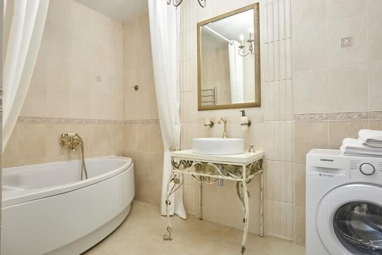 Два санузла, один из которых представляет собой настоящий спа-салон с каменной напольной ванной и тропическим душем.