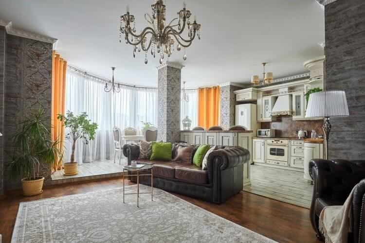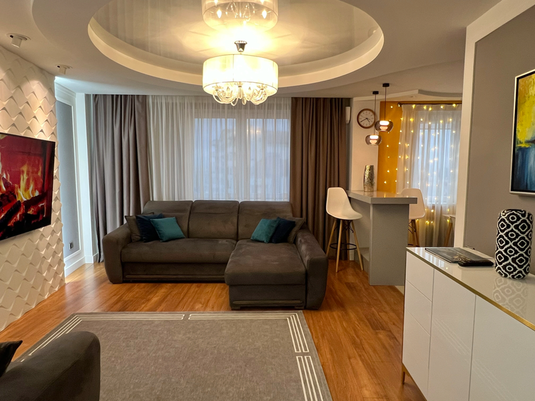 За массивной металлической дверью гостям открывается поистине чудесная картина. Наполненная светом квартира с открытой планировкой. Грамотно спроектированы необходимые функциональные зоны: прихожая, гостиная, столовая, кухня и 2 туалетные зоны.