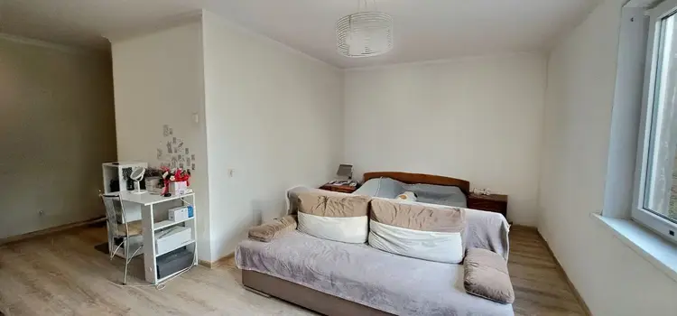 Продам однокомнатную кв. по ул.Сов.пограничников, расположена на высоком первом этаже 9этажного дома. Общая площадь 43.2 м2, кухня 8м2, комната 25м2. Входная дверь металлическая, окна стеклопакеты ПВХ выходят в зелёный двор, тихо. Санузел раздельный - отделка плитка. Пол ламинат. В прихожей и на кухне пол плитка. В данный момент обои сняты, стены пошпаклеваны под поклейку обоев или покраску. Светлая, тёплая и просторная квартира. Супермаркеты, школы, детсады, мини рынок, транспортные остановки в шаговой доступности. Через дорогу больница скорой помощи и лес с пляжем на Немане и велодорожками. До исторического центра 25 минут пешком или 10 мин. на транспорте.