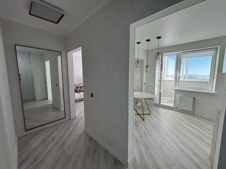 Продается отличная светлая просторная 1-комнатная квартира с современным ремонтом, расположенная в молодом, но уже развитом районе города по ул. Макаровой 2 Б. Панельный дом 2023 года, 18 этаж из 19.