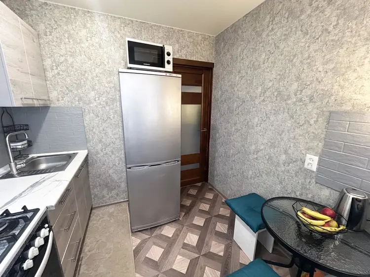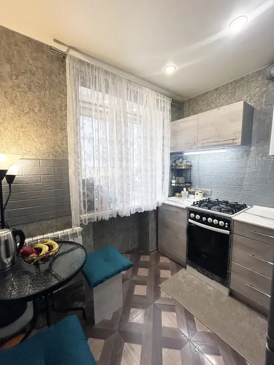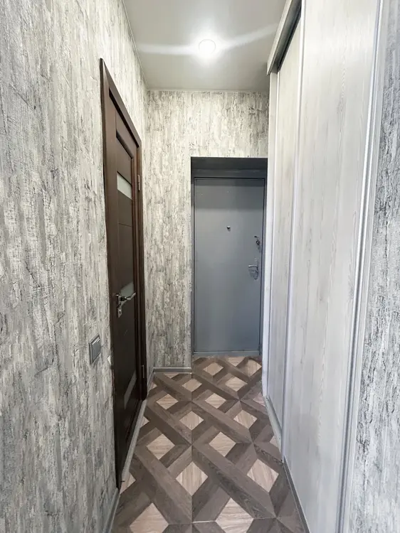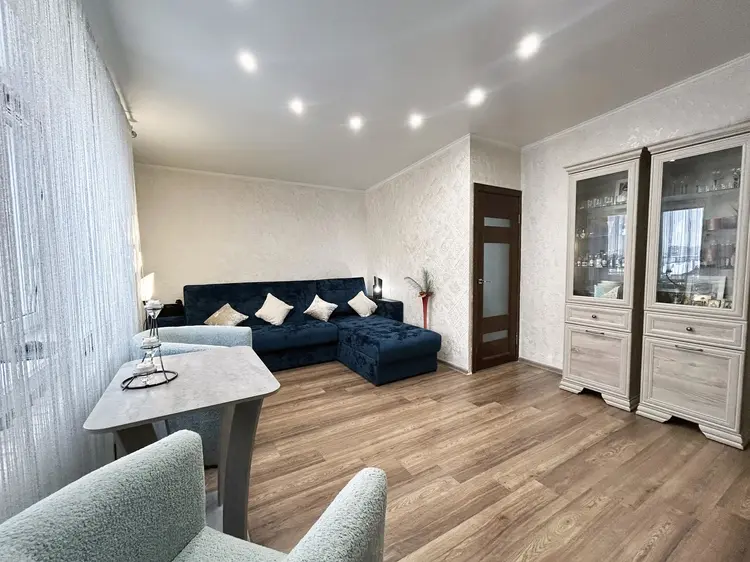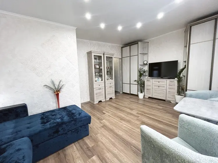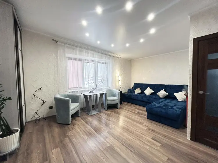 Квартира теплая, светлая, с хорошим ремонтом. Заменена электрическая проводка, канализационные трубы. Установлены окна ПВХ. Металлическая входная дверь. Качественные межкомнатные двери МДФ. Натяжной потолок со встроенным точечным освещением. На полу в комнате – ламинат, в кухне и прихожей – плитка. В комнате и прихожей есть вместительные удобные шкафы-купе. Совмещенный санузел облицован плиткой, сантехника в хорошем состоянии. За квартирой закреплена подвальная ячейка. В доме были произведены работы по ремонту и гидроизоляции кровли.