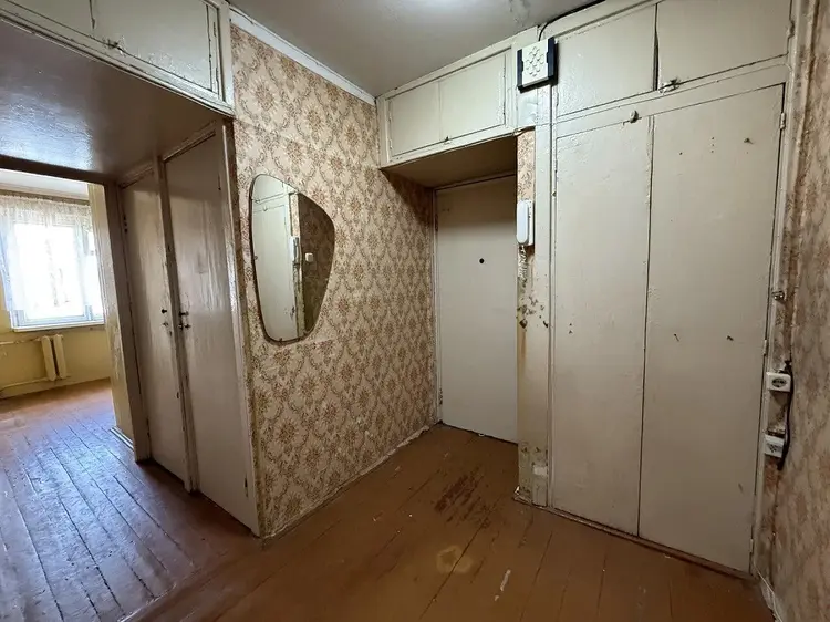 2-х комнатная квартира в 4-х квартирном деревянном доме 1935гп. по переулку Суворова, расположенная на первом этаже. Квартира без ремонта. Высота потолков 2,95 м. Окна деревянные, пол деревянный дощатый. Отопление печное. Подведена холодная вода. Расположение и планировка квартиры позволяет сделать зону отдыха с выходом из веранды.